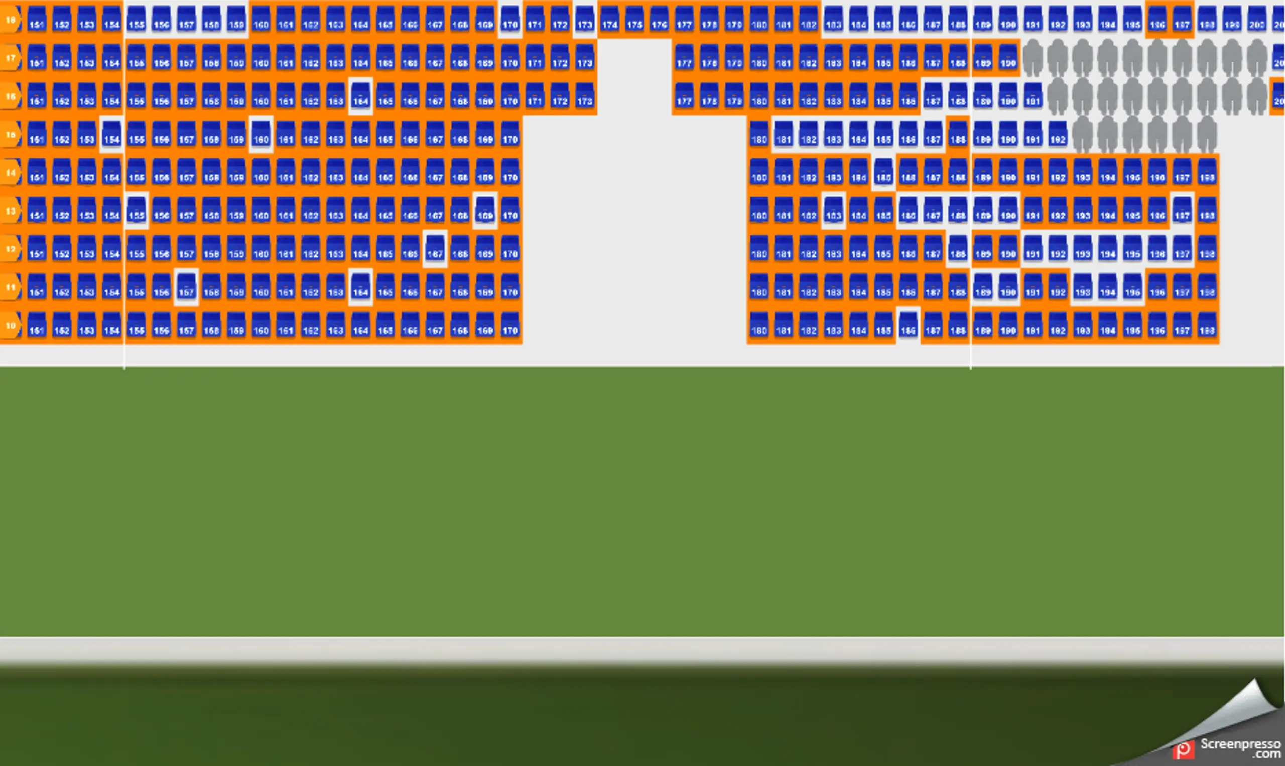 Sæderne, som er markeret med rødt er forbeholdt den sæsonkortholder, som har dette sæde til Randers FC's Superliga kampe.
