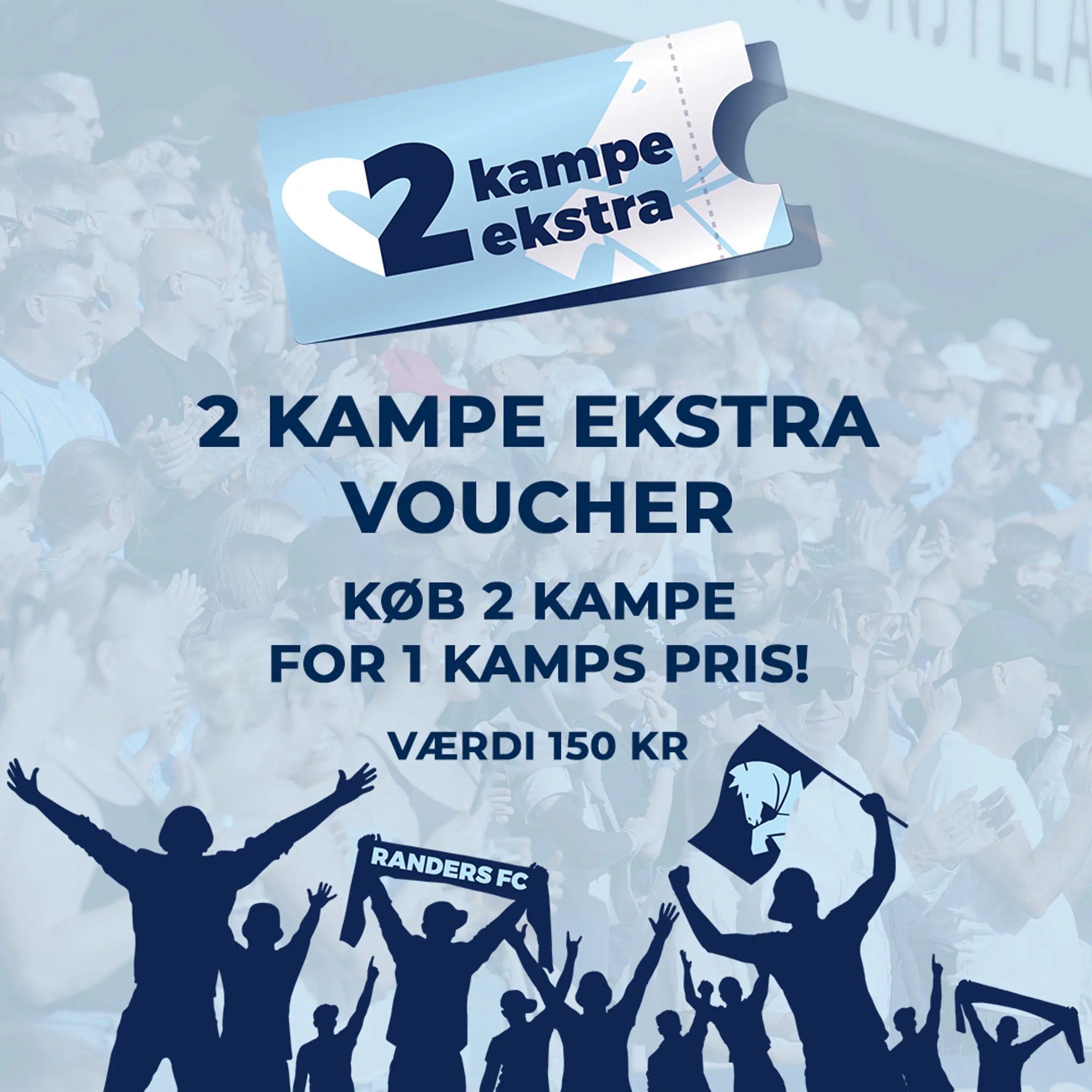 Vi vil så gerne se dig til 2 kampe ekstra i løbet af hele sæsonen. Så benyt dig da af vores “2 kampe ekstra”-voucher og få 2 kampe for 1 kamps pris 💙 Tilbuddet skal benyttes inden 1. oktober 2024. Dvs. voucheren kan benyttes til følgende hjemmekampe: Søndag den 1. september kl. 18.00 🆚 AaB Søndag den 22. september kl. 14.00 🆚 FC Midtjylland Lad os gøre det sammen. 2 kampe ekstra! For stemningen. For oplevelsen. For fællesskabet!
