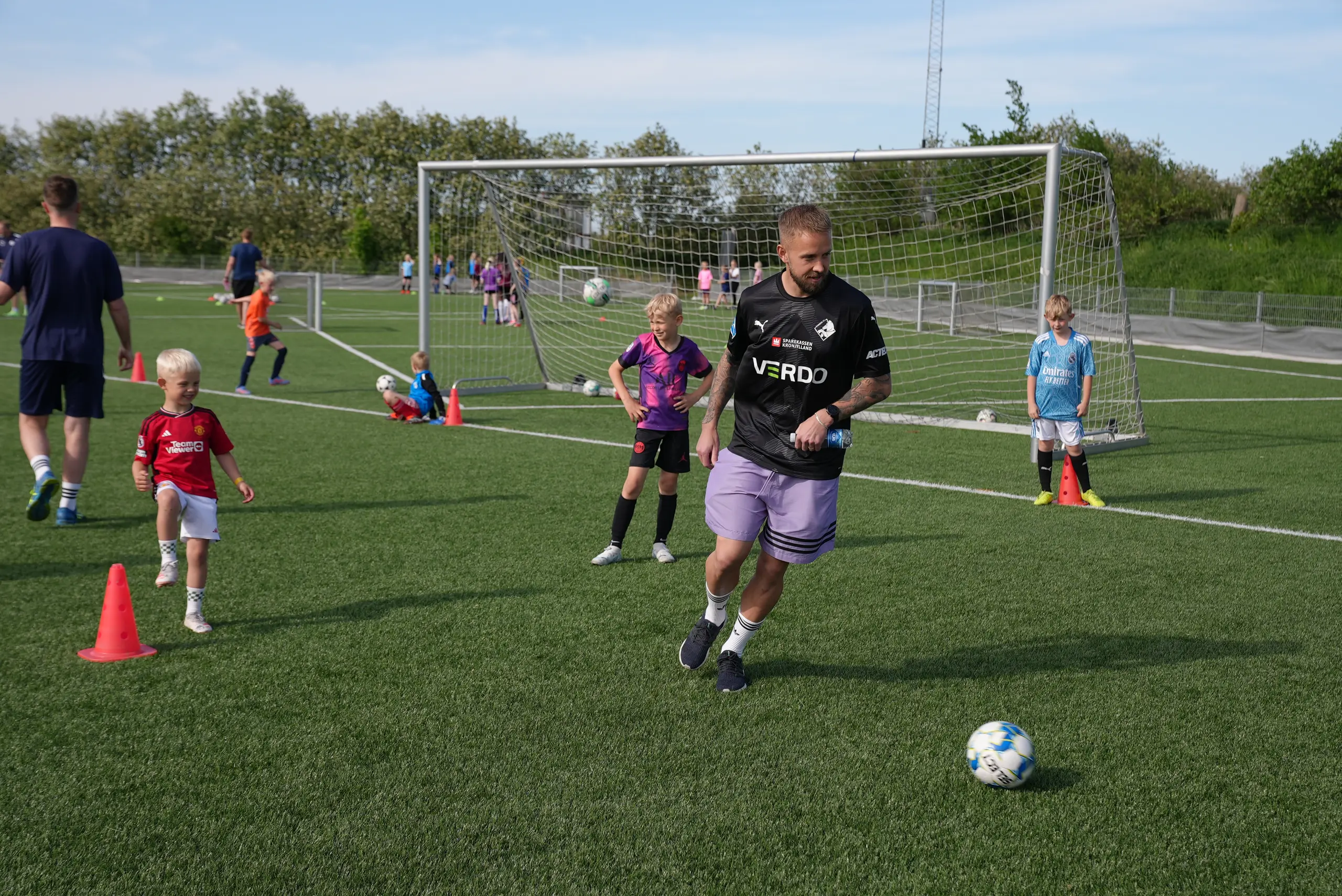 Her stod en masse ungdomshold klar til at tage imod Randers FC-spillerne til alles glæde.