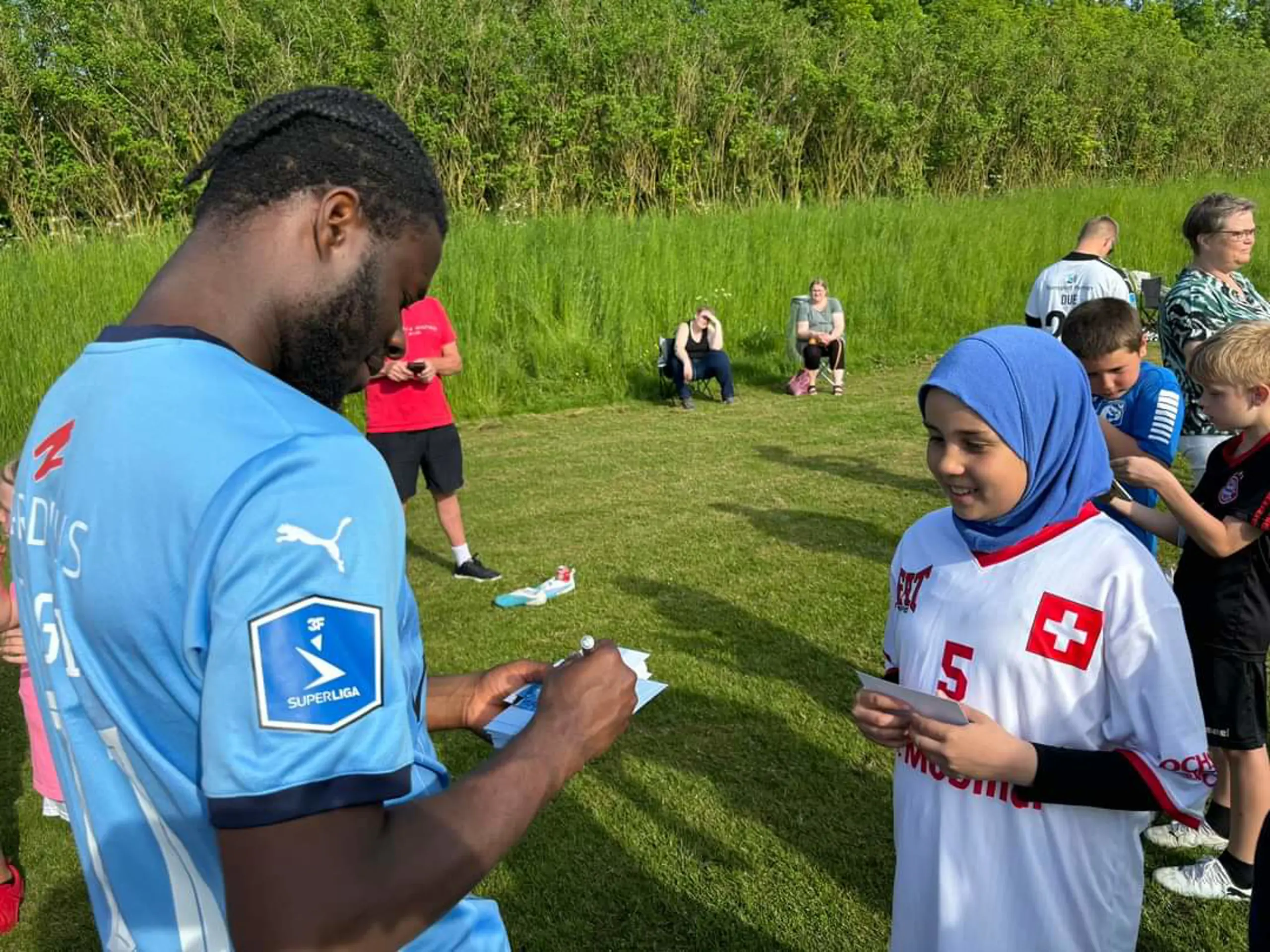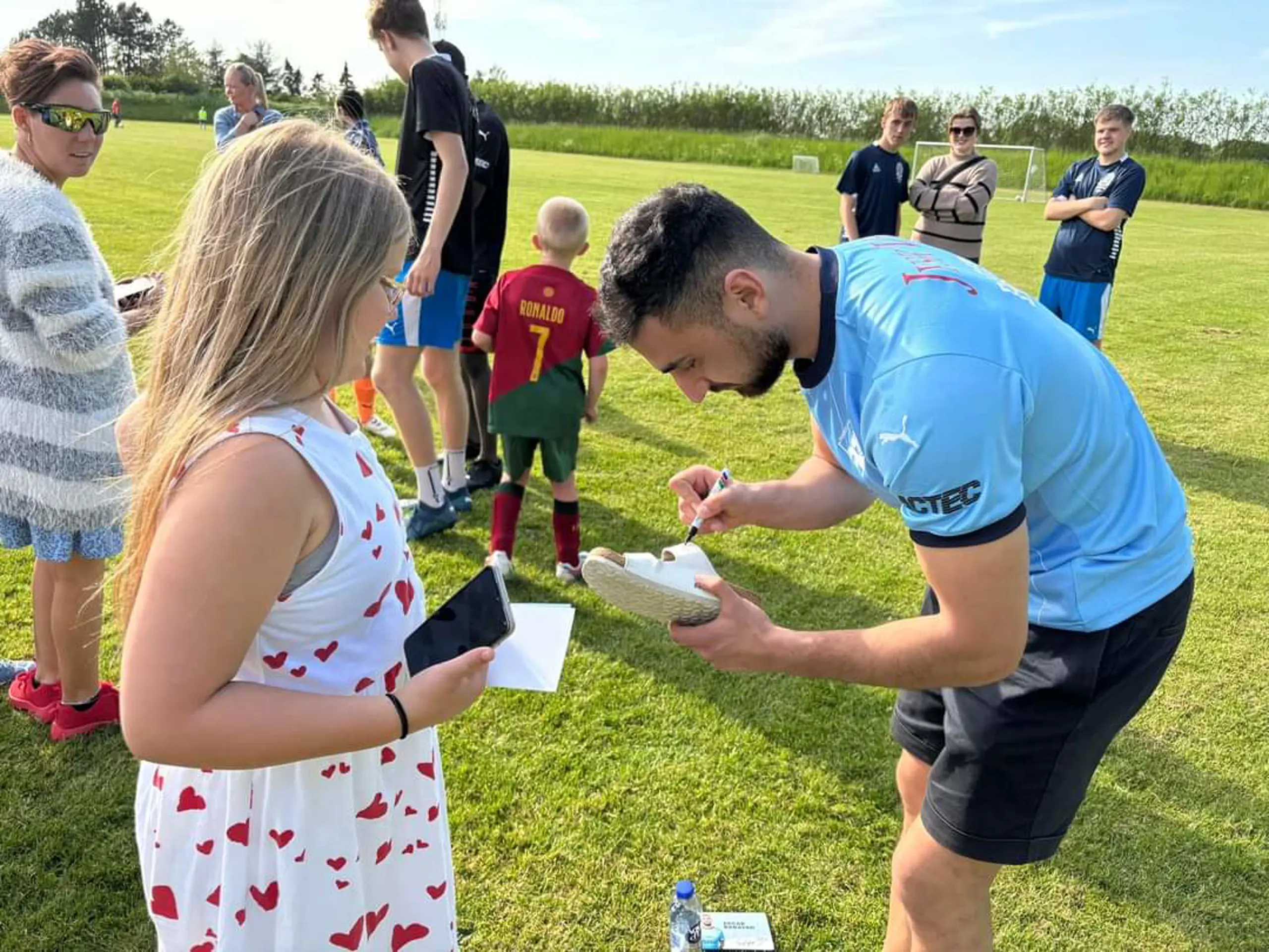 Først deltog Randers FC-spillerne i de forskellige øvelser rundt på træningsanlæggene, hvorefter det var tid til en hyggelig snak med blandt andet autografskrivning og selfies.